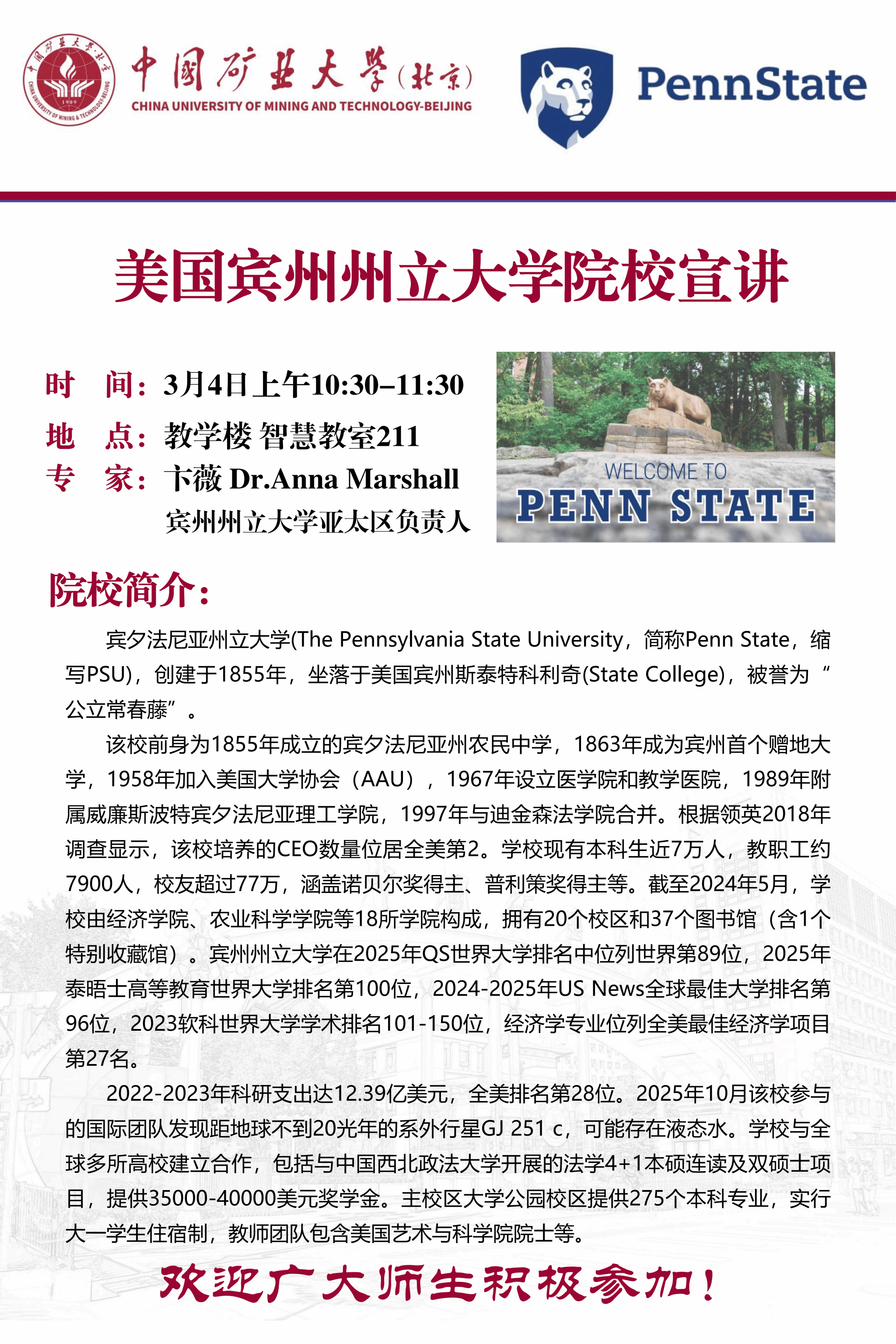 美国宾州州立大公司校宣讲